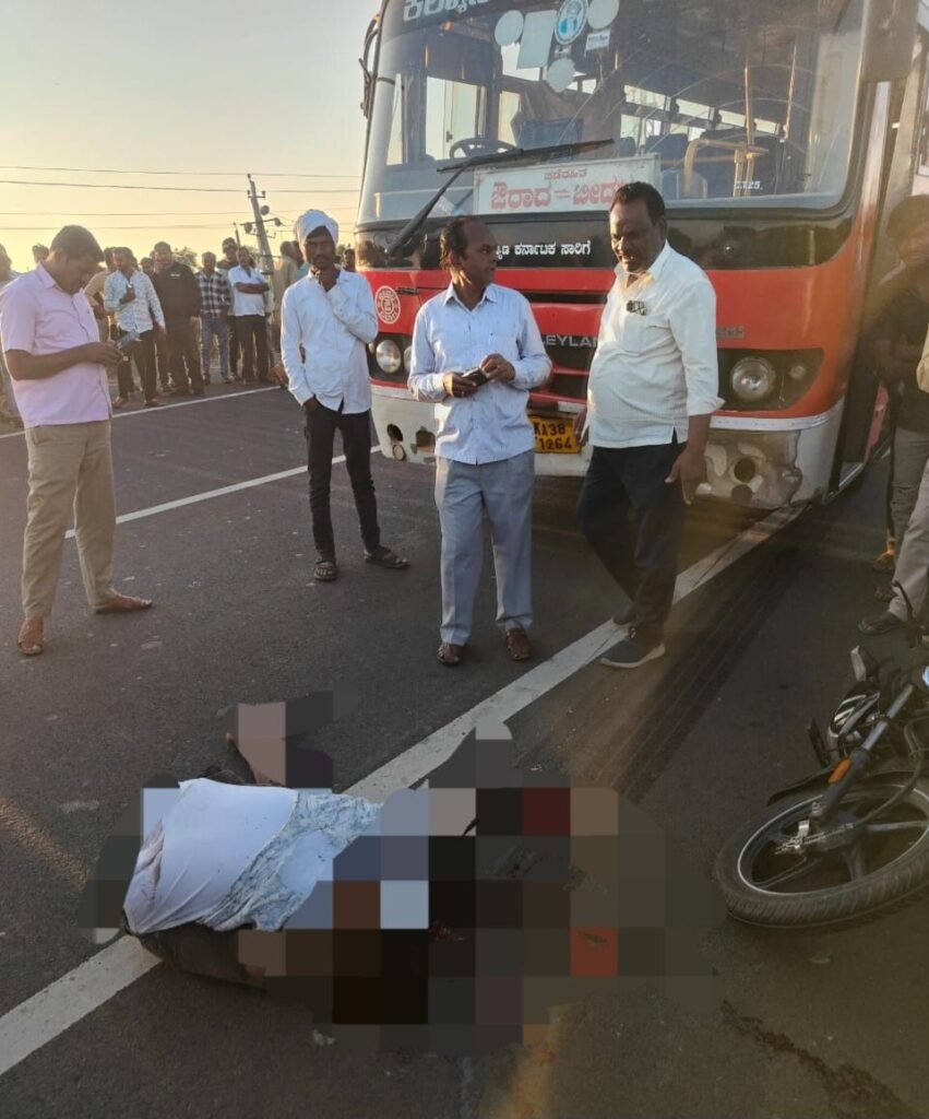 ಬೀದರ್-ಔರಾದ್ ಹೆದ್ದಾರಿಯ (161A) ಬಲ್ಲೂರ ಗ್ರಾಮದ ಸಮಿಪ ಈ ಘಟನೆ ನಡೆದಿದ್ದು, ಔರಾದ ಘಟಕದ ಬಸ್ ಸಂಖ್ಯೆ KA 38 F 1264 ಔರಾದ – ಬೀದರ ತಡೆರಹಿತ ಬಸ್ ಇದಾಗಿದ್ದು, ಹಿಂಬದಿಯಿಂದ ವೇಗವಾಗಿ ಬಂದ ಬಸ್ ಮುಂಭಾಗದಲ್ಲಿ ಚಲಿಸುತ್ತಿರುವ ಬೈಕ್ ಗೆ ಡಿಕ್ಕಿ ಹೊಡೆದು ಬೈಕ್ ಸವಾರನ ಮೇಲೆ ಏರಿದೆ. ಬಸ್ ಡಿಕ್ಕಿ ಹೊಡೆದ ರಭಸಕ್ಕೆ ಬೈಕ ಸವಾರ ಗಂಭೀರವಾಗಿ ಗಾಯಗೊಂಡು ಸ್ಥಳದಲ್ಲೇ ಪ್ರಾಣ ಬಿಟ್ಟಿದಾನೆ.